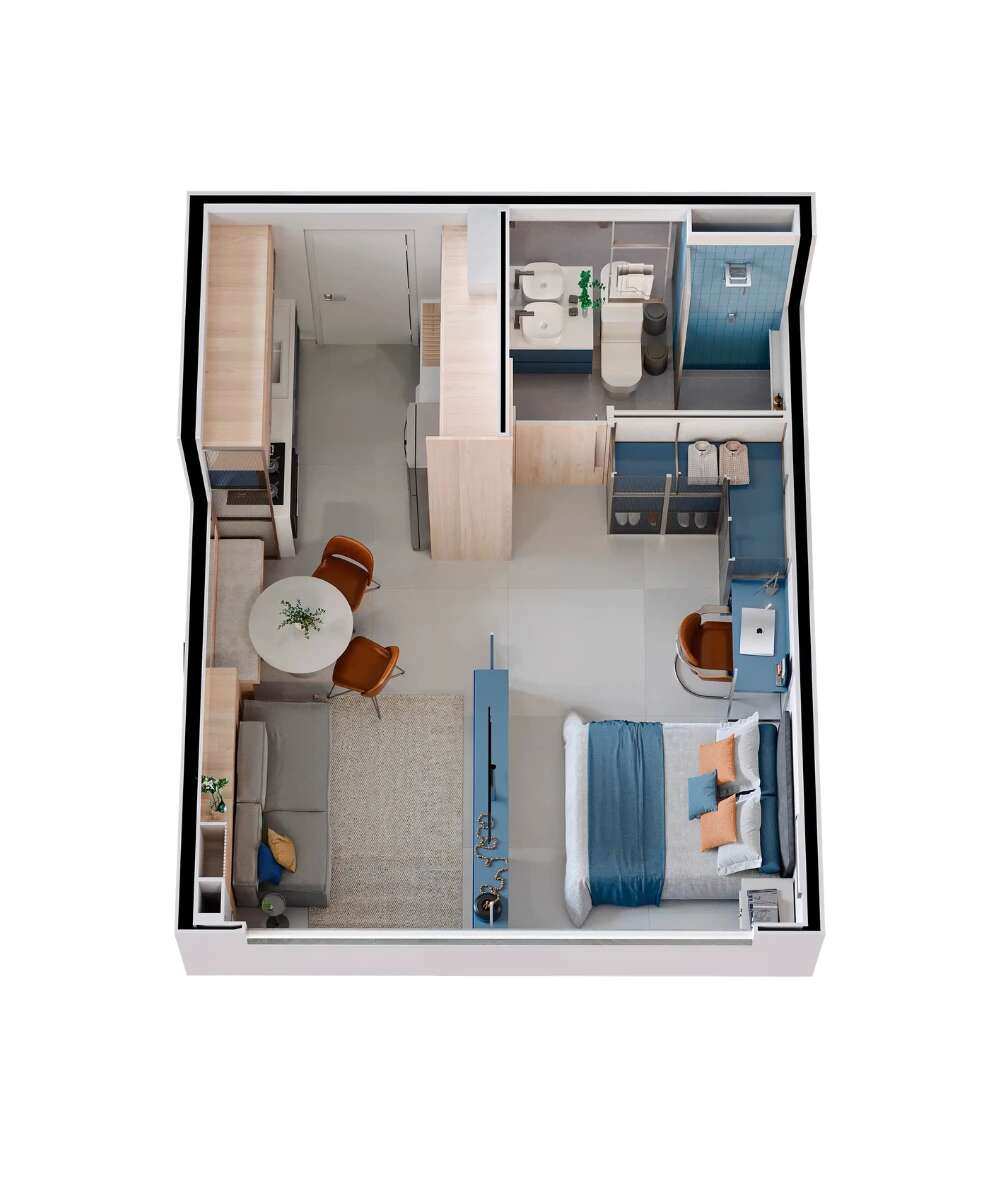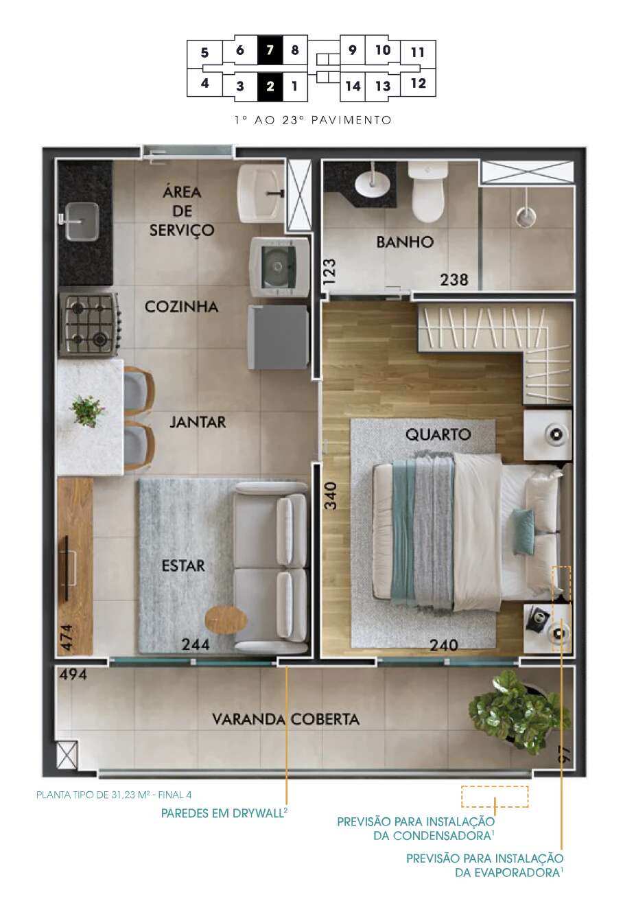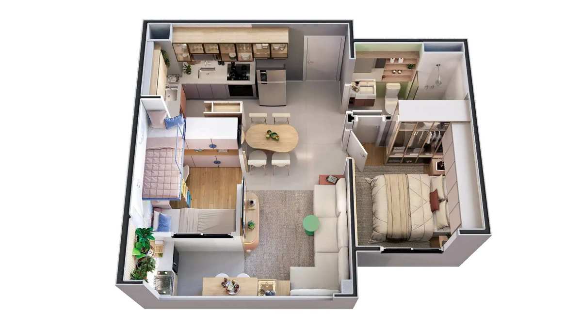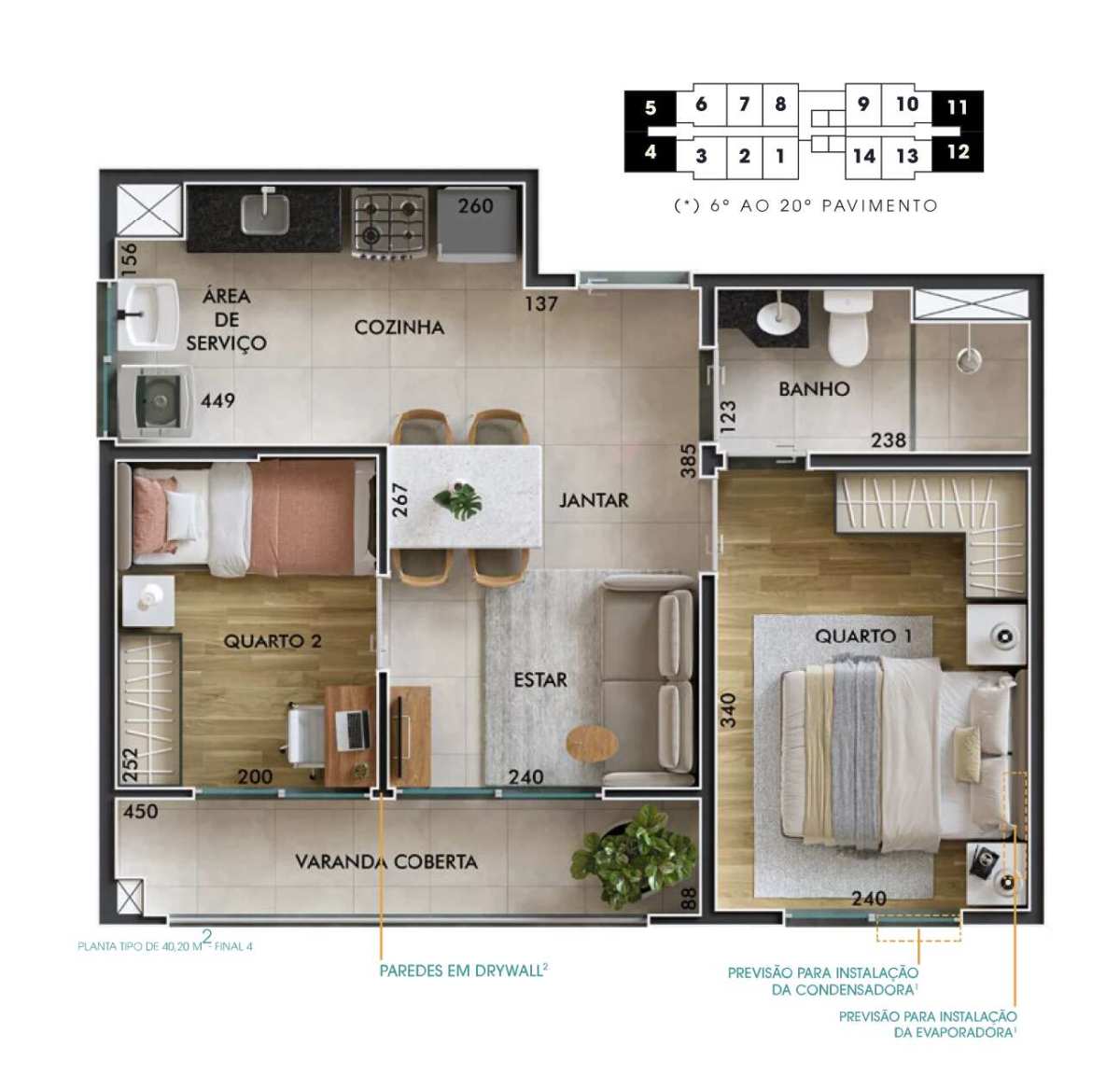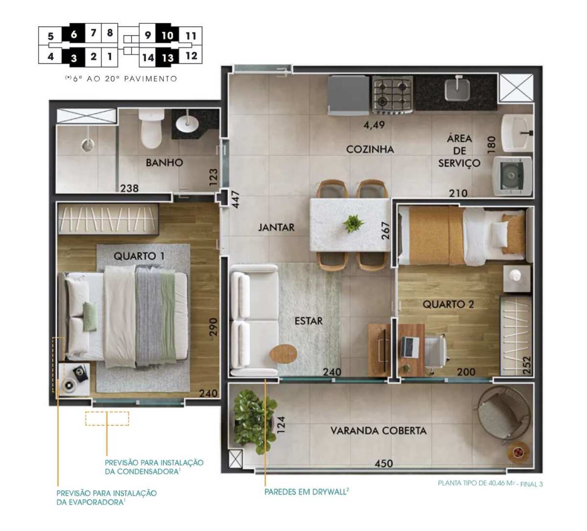 2 dorms com 40,5 m² , varanda grill e suíte canadense